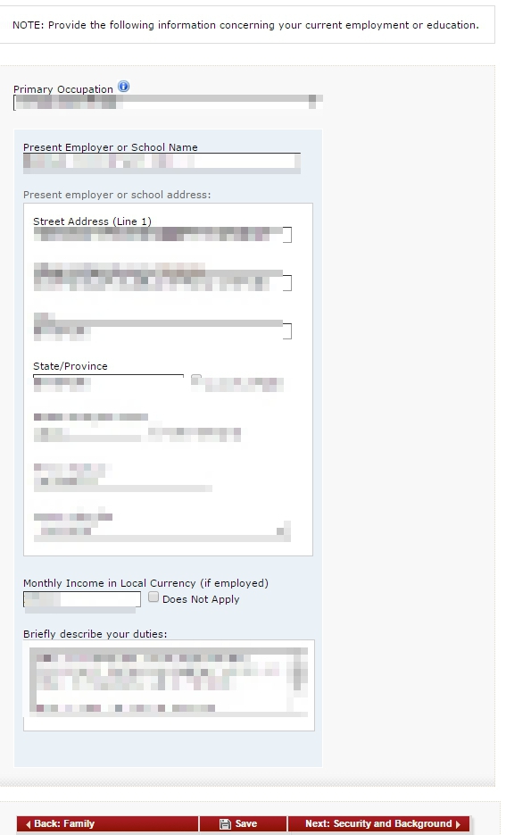 พร้อมกับเปิดดูคู่มือของสถานทูตสหรัฐฯ ที่ทำไว้ ปรากฎว่าเห็นมีคำถามว่าเคยทำงานมาก่อนไหม แล้วให้กรอกรายละเอียดการทำงานเพิ่ม