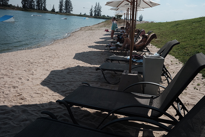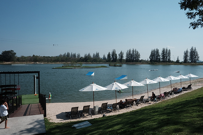 ส่วนโซนด้านล่างจะเป็นจุดออกตัวและมีเก้าอี้ริมหาด ไว้นั้งพักเหนื่อยแต่ถ้าใครไม่อยากเล่นก็มานั้งอาบแดดหรือเล่นน้ำด้านข้างได้ค่ะ น้ำเป็นน้ำจืดนะคะไม่ใช่น้ำทะเล เพราะงั้นไม่แสบตาไม่เค็มคอค่ะ 5555