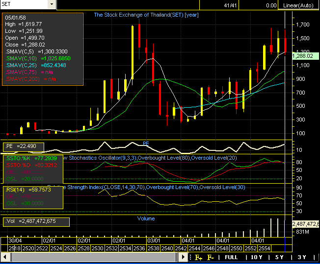 ตลาดหุ้นไทยปิดท้ายปี 2016 ที่ 1,542.94 จุด จากสิ้นปี 2015 ซึ่งปิดที่ 1,288.02 จุด หรือคิดเป็นผลตอบแทนไม่รวมเงินปันผลที่ 19.72% ใคร Long Tfex ตั้งแต่ต้นปี ได้ไปกันเท่าไหร่