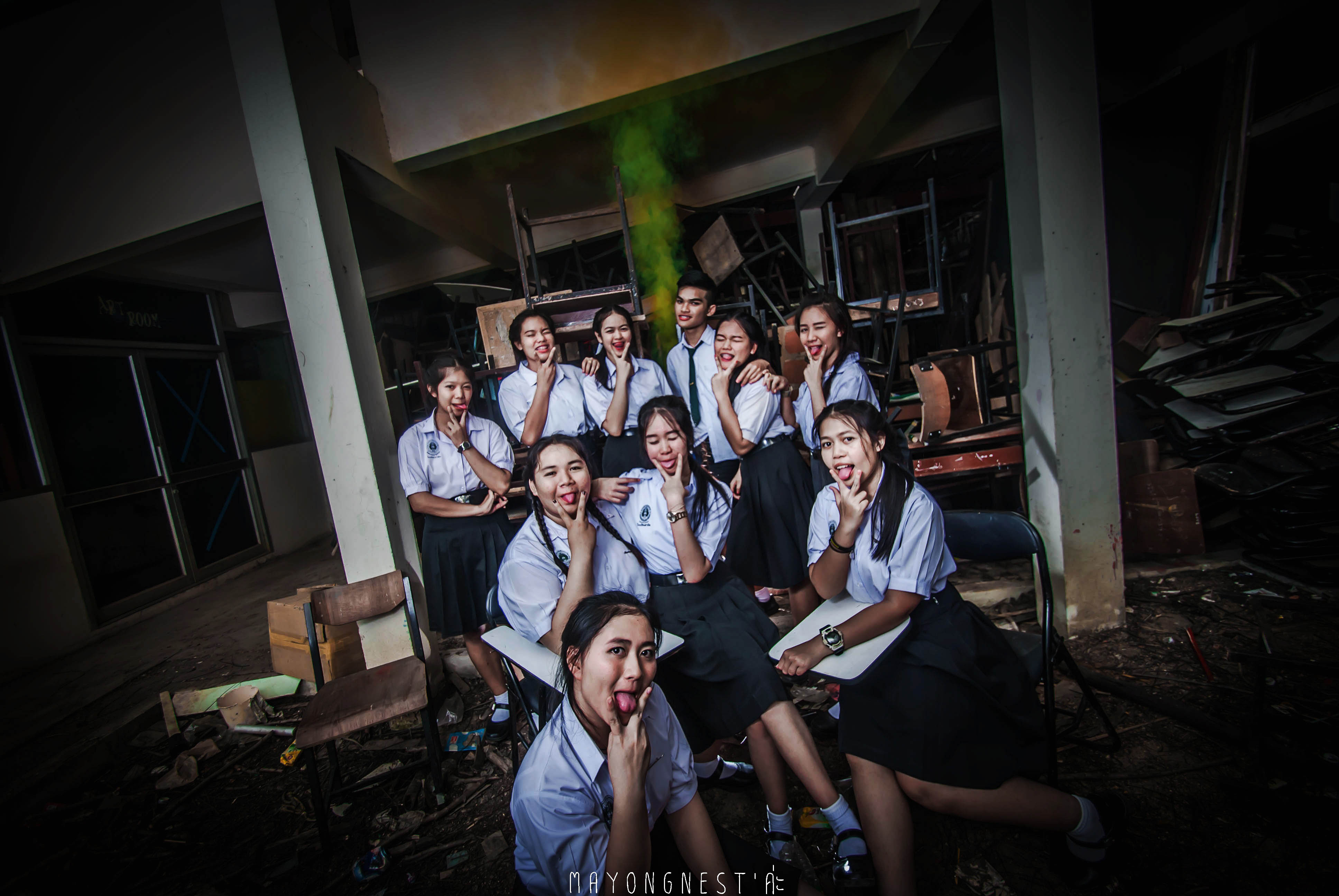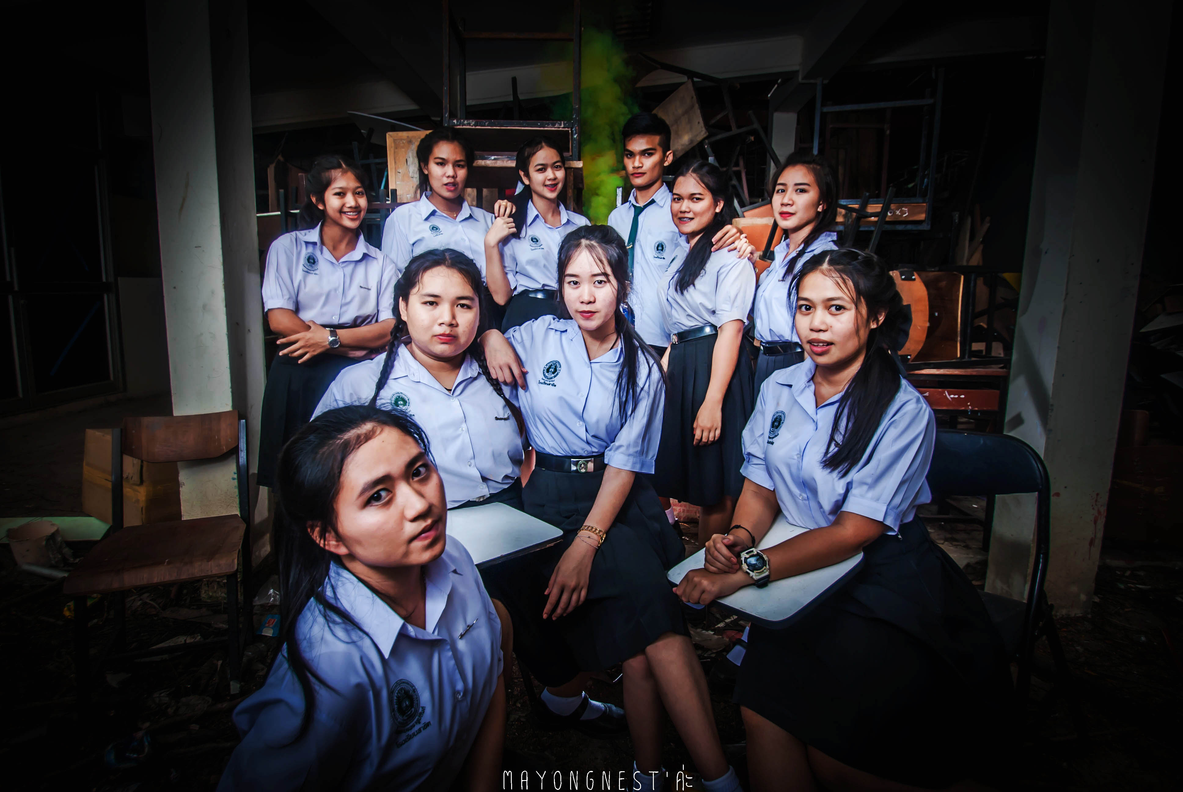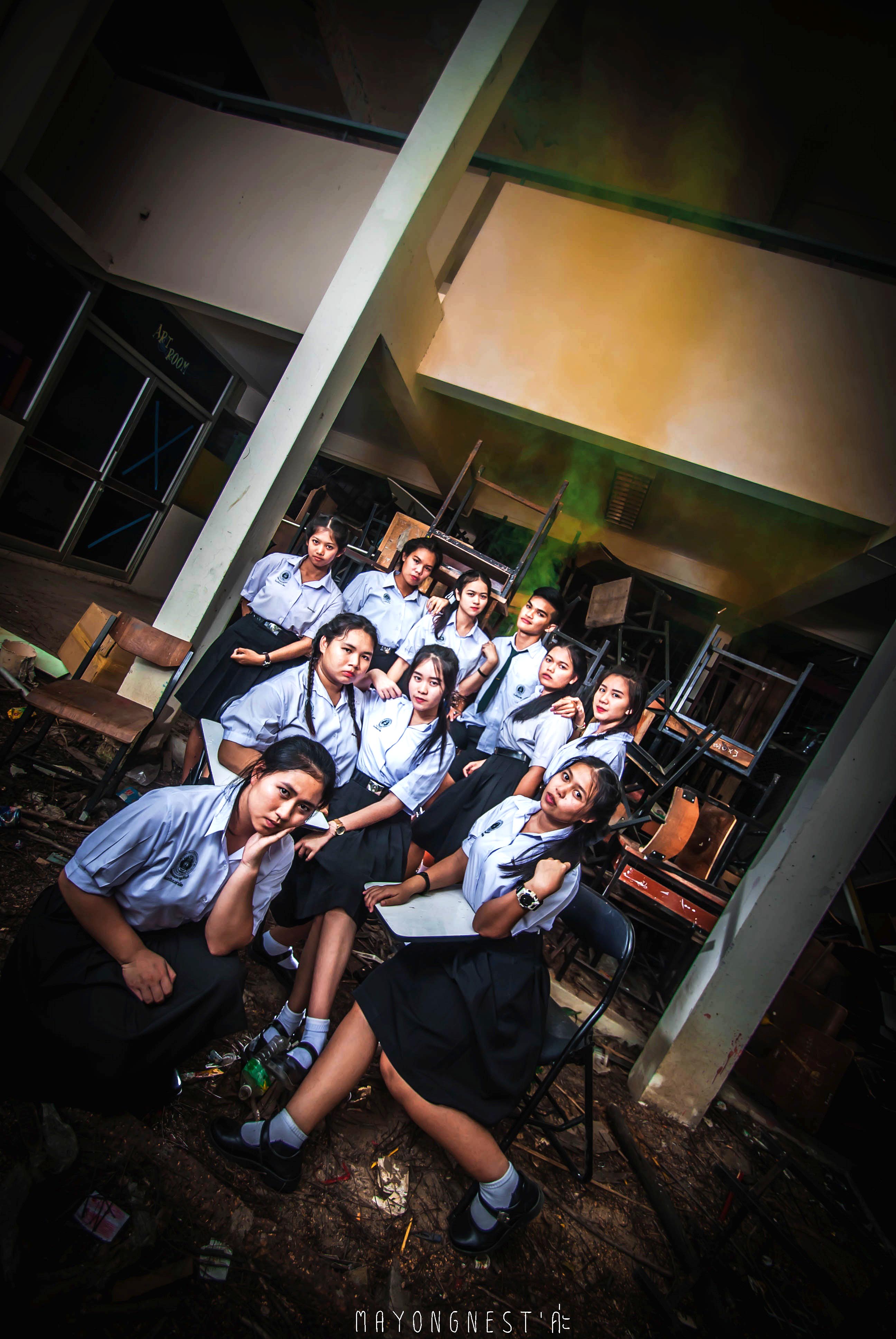 อีกเซต นี่ก็เป็นบริเวณ ภายในห้องเรียน เป็นห้องที่ใหญ่มาก จัดแสงไฟ สนุกดีครับ บอกได้แค่ว่า