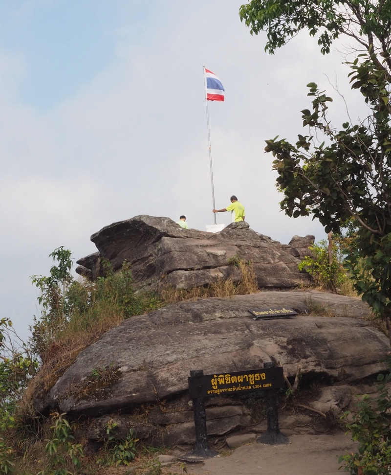 เดินต่อกันไปที่ ผาชูธง มีป้ายบอกอันตรายห้ามขึ้น แต่เราเห็นคนขึ้นไปเต็มเลย