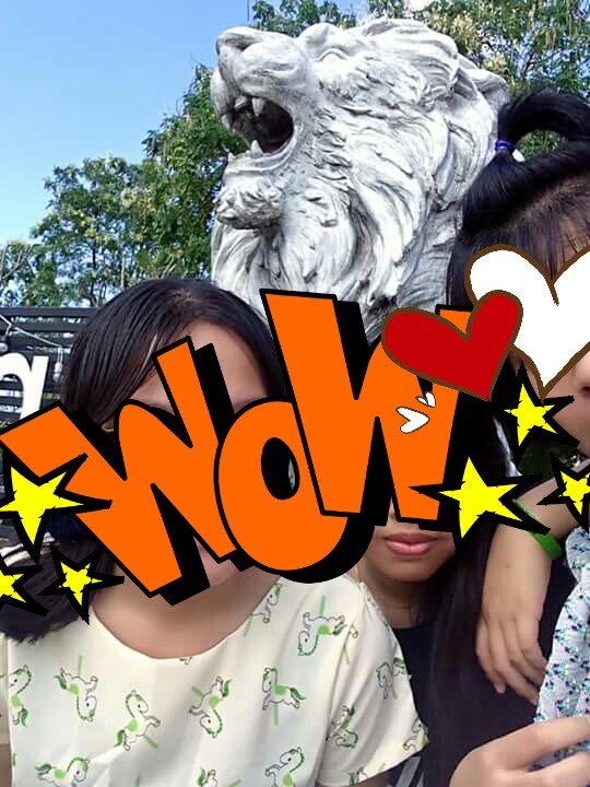 เมื่อขอบอกขอบใจอะไรทุกอย่างเรียยร้อย ก็กลับค่ะ ขี่รถมาเรื่อยๆ กะว่าเจอที่ไหนก็แวะล่ะ ก็ไปสะกิดใจกับป้ายหนึ่ง "บ้านศิลปิน". ด้วยความที่เพื่อนเราชอบพวกงานวาดรูปอะไรแบบนี้ และชื่อก็ช่างเป็นใจให้คิด แวะเลยค่าา 555. แต่ไม่กล้าเข้าไป จอดรถแล้วนะ เห็นฝรั่งเดินเข้าเดินออก กลัวว่าจะไม่ใช่ที่เที่ยว อ่ะ งั้นถ่ายข้างหน้ากับพี่สิงโตเป็นอนุสรณ์แล้วกันว่าเคยมา 55