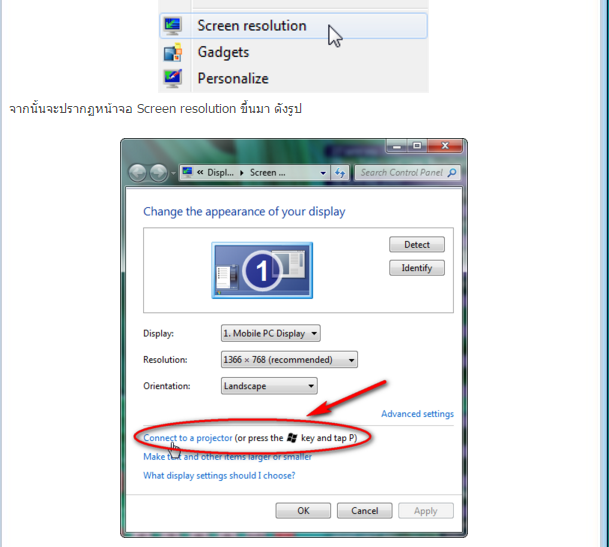 connect to projector แล้วนิ่ง(ไม่ได้) ทำไงดีครับ ช่วยหน่อย win 7 64bits มีรูป