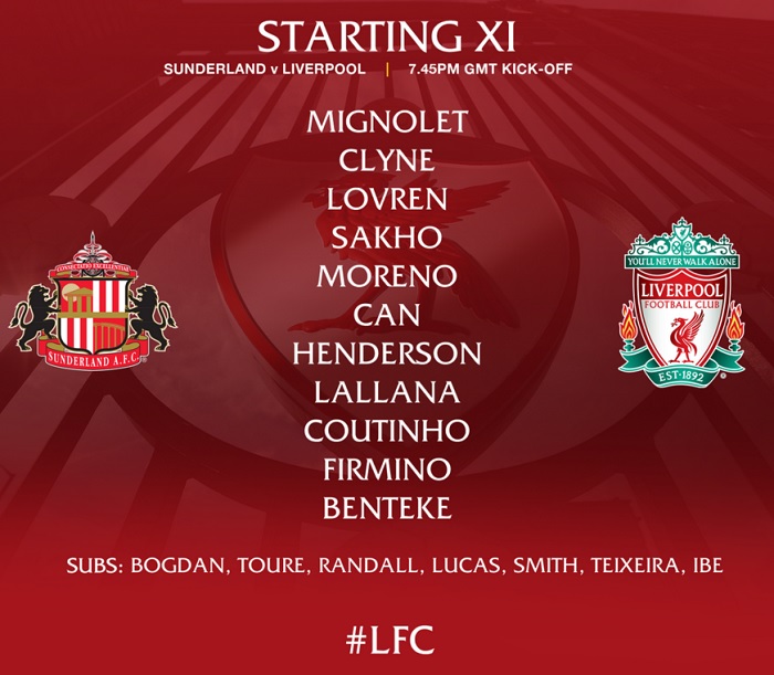 11 ตัวจริง: มินโญเลต์, ฟลานาแกน, จอห์นสัน, สเคอร์เทล, แอ็กเกอร์, เจอร์ราร์ด ©, อัลเลน, เฮนเดอร์สัน, คูตินโญ่, ซัวเรซ และสเตอร์ริดจ์ สำรอง: โจนส์, สเตอร์ลิง, อัสปาส, ซาโก้, ลูคัส, ซิสโซโก และโมเซ