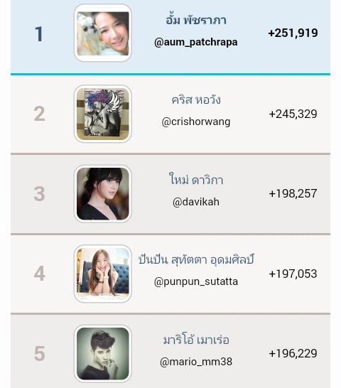 ข้อมูล IG ดารา ที่มีผู้ติดตามเพิ่มขึ้นมากที่สุดในปี 2558 ดูข้อมูลเพิ่มเติมได้ที่ http://thailandsuperstar.com/instagram/2015