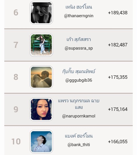 Instagram ดารา ที่มีคนติดตามเพิ่มขึ้นมากที่สุดในเดือนนี้ (พฤศจิกายน)
