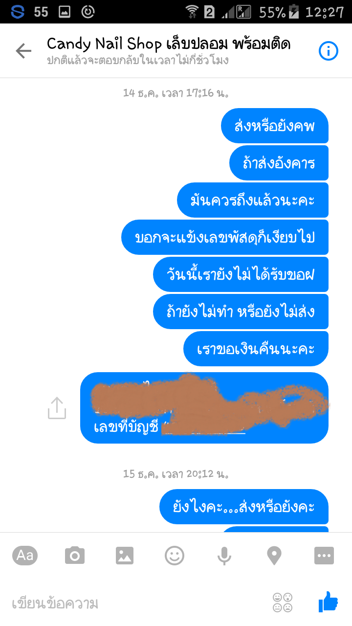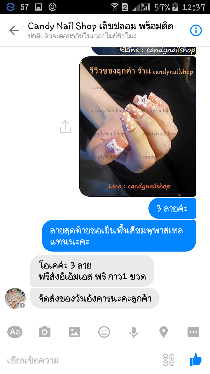 เมื่อวันที่ 6 ธันวาคม 2558 เราได้สั่งซื้อเล็บปลอมกับร้าน Candy Nail Shop ผ่าน Facebook