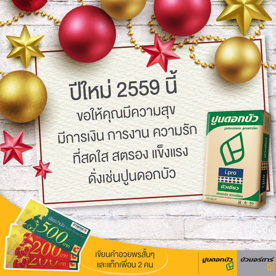 แม้ปูนดอกบัวจะดูขัดลุคกับเดี้ยนนิดหน่อย แต่เดี้ยนก็ขอแชร์นะคะ ลองเขียนคำอวยพรสั้นๆให้คนที่คุณอยากอวยพรช่วงปีใหม่แล้ว ลุ้นบัตรกำนัลชอปปิ้ง Celebrate ในช่วงเทศกาลมากคะ
