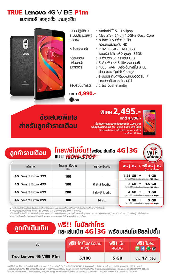 รบกวนสอบถาม CC truemove เกี่ยวกับโปรของ True Lenovo VIBE P1m