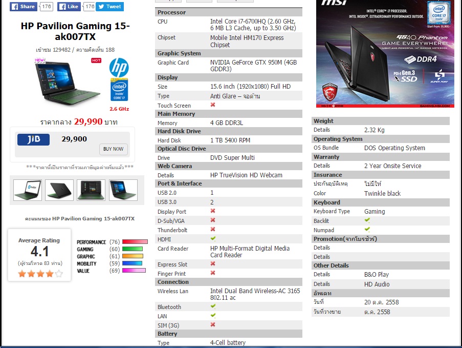 HP Pavilion Gaming 15-ak007TX รุ่นนี้ดีไหมครับ ?