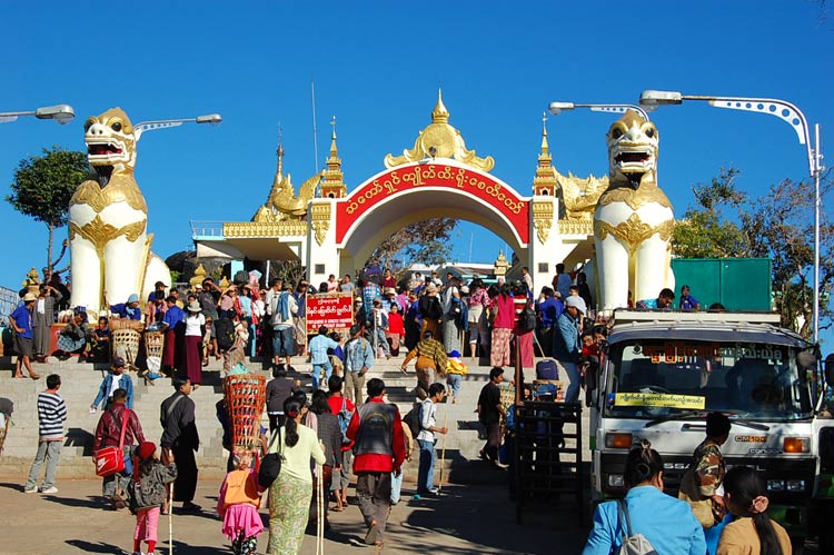 ความศรัทธาอย่างไม่มีขีดจำกัดของชาวพุทธเมียนม่าร์ทำให้พวกไม่มีอาชีพบางคนเห็นช่องทางทำมาหากินตั้งด่านที่ทำเป็นศาลที่ไม่แน่ใจว่าเป็นพระอะไรไม่ได้ถ่ายรูปมาเพราะไม่ชอบการถูกตื๊อขอเงินมีคนหนึ่งยืนรอสวดอยู่ข้างรูปปั้นพระ อีก 2-3 คน ใส่เสื้อขาวแขนยาวกางเกงขายาวสีดำยืนดักและพูดเสียงดังต้อนให้คนเข้าไปไหว้และฟังสวดแล้วทำบุญ ส่วนพระกับชีก็กวาดใบไม้สุมไฟเขย่าขันหรือบาตรดักเป็นระยะๆตามจุดคับขันที่คนต้องหยุดพักจากการไต่ขึ้นที่สูงชัน