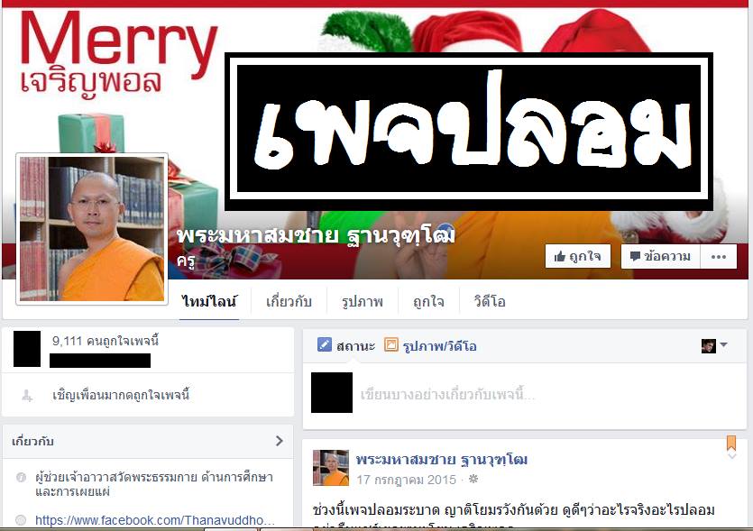 ***กรณีหน้าเพจชื่อ พระมหาสมชาย ฐานะวุฑฺโฒ(ปลอม)