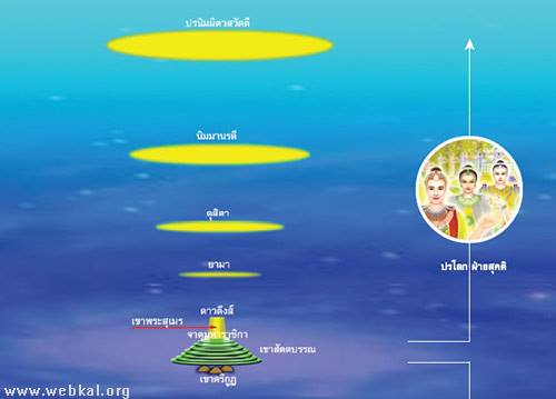 มีการพูดถึงจำนวนเงินบริจาค แล้วไล่ลำดับชั้นสุขคติภูมิสวรรค์ไปถึงชั้นที่ 7