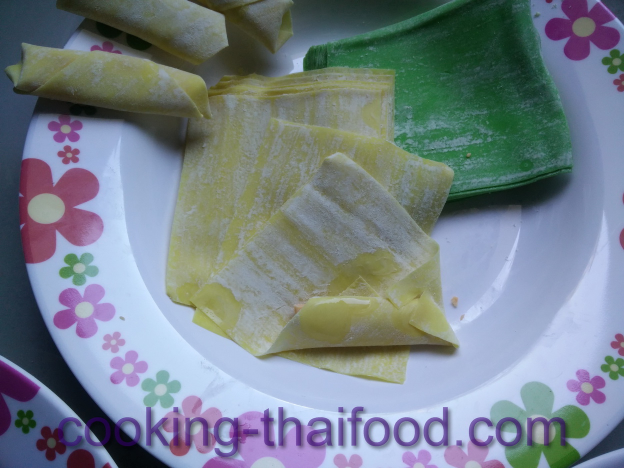1. หั่นส่วนประกอบให้มีลักษณะ พอดีที่แผ่นเกี๊ยว ห่อได้ (ใช้ครึ่งหนึ่งของทั้งหมด เนื่องจากว่าไม่รู้จะทอดให้ใครกินบ้าง)