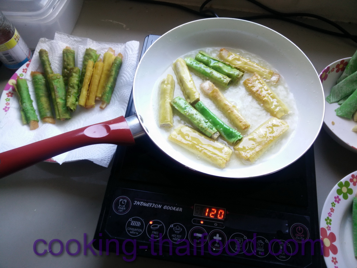5.เลือกที่จะทอดเกี๊ยวห่อชีสเป็นอันสุดท้าย เพราะว่าน้ำมันไม่เปื้อน และชีสจะได้ยืดเวลากิน