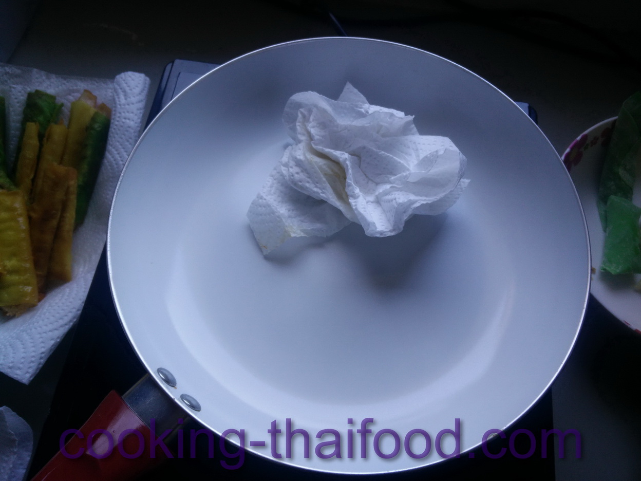 น้ำมันที่ใช้ เป็นน้ำมันจากเมล็ดทานตะวัน ใช้ผัดที่ความร้อนไม่สูง ไม่น่าเป็นไร(มั๊ง)