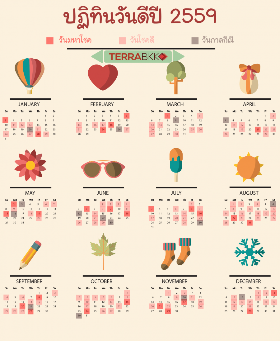 สีแดง คือวันมหาโชค สำเร็จดีมาก สีครีม คือวันโชคดี วันสำเร็จ ได้รับการสนับสนุน สีเหลือง คือวันโชคดีปานกลาง พอไปได้แต่ไม่เด่น