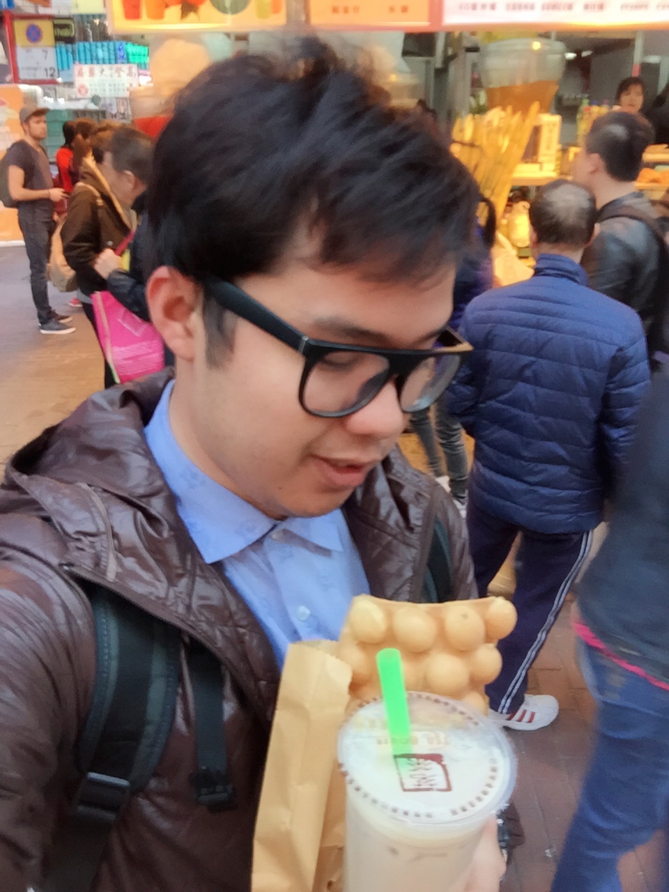 หลังจากเชคอินเสร็จเก็บกระเป๋าก็ออกเที่ยวทันที เพื่อไม่ให้เสียเวลา เวลาตอนนี้ก็ประมาณบ่าย 2 โมงกว่าๆ จะ 3โมงแล้ว ก็ทำเวลา เลยจัด วาฟเวิลฮ่องกงกับชาไข่มุก ซะมื้อแรก วาฟเฟิลเด็ดจริงครับ กรอบอร่อยออริจินอลมากๆ ราคา 36$ ก็ประมาณ 165.6 บาท เดินกินนานมากยังกรอบอยู่เลยผมกินมันไม่มีไส้เหมือนที่ไทย แต่มันก็อร่อย ส่วนชาไข่มุกหวานกำลังดีเข้ากันๆ