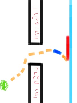 สีเขียวคือรถของเราไปตามทางสีส้มพอตอนโค้งเราบีบเบรคมือปรากฏว่าเบรคไม่ได้ จุดนั้นเราตกใจมากแต่ยังดีที่เราตั้งสติแล้วคิดว่าโค้งยังไงก็ไม่พ้นชนเลยละกัน