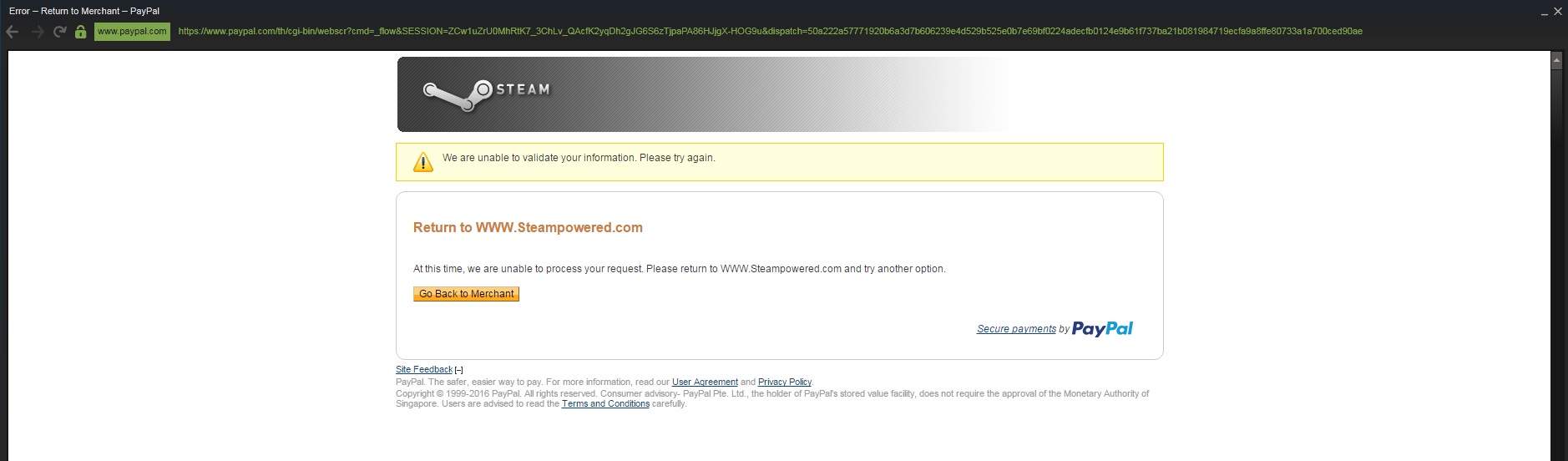 ระบบจ่ายเงิน Paypal ของ Steam ตอนนี้มีปัญหารึเปล่าครับ
