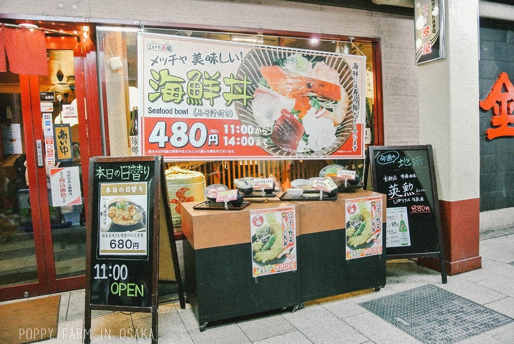 พอดีระหว่างทางเดินไปขึ้น HEV five เดินผ่านร้านข้าวหน้าปลาร้านนึงตรง แมคโดนัลใกล้ๆบันไดลงของ Osaka JR station (Umeda subway กับ Osaka JR station มันคือที่เดียวกันนะ เด๋วจะงง )