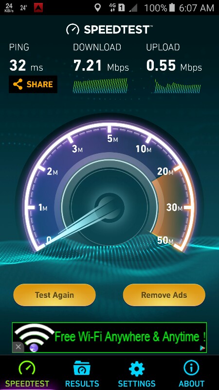 ปกติ Scan หา AIS 4G ไม่เคยเจอบนถนน ลาดพร้าว และ รามคำแหง และเมื่อเช้าก็พยายามค้นหา ก็ยังไม่เจอ ตกเย็นเลิกงานกลับห้อง หยิบมือถือกะว่าจะโทรคุยกับพ่อ แม่ มี 4G ซะงั้น ส่วน Speed Test อาจจะไม่สูงลิ่ว แต่ถ
