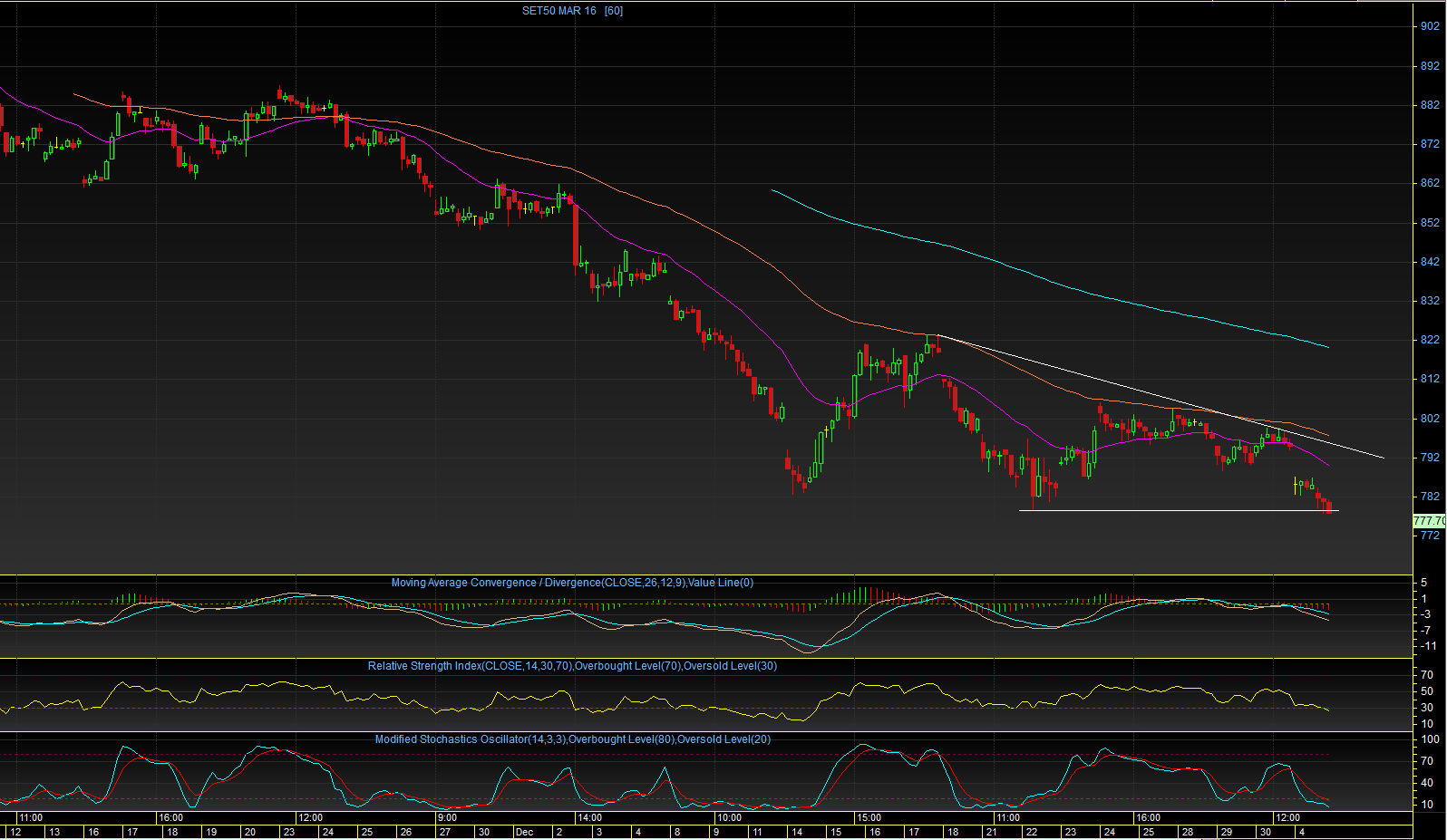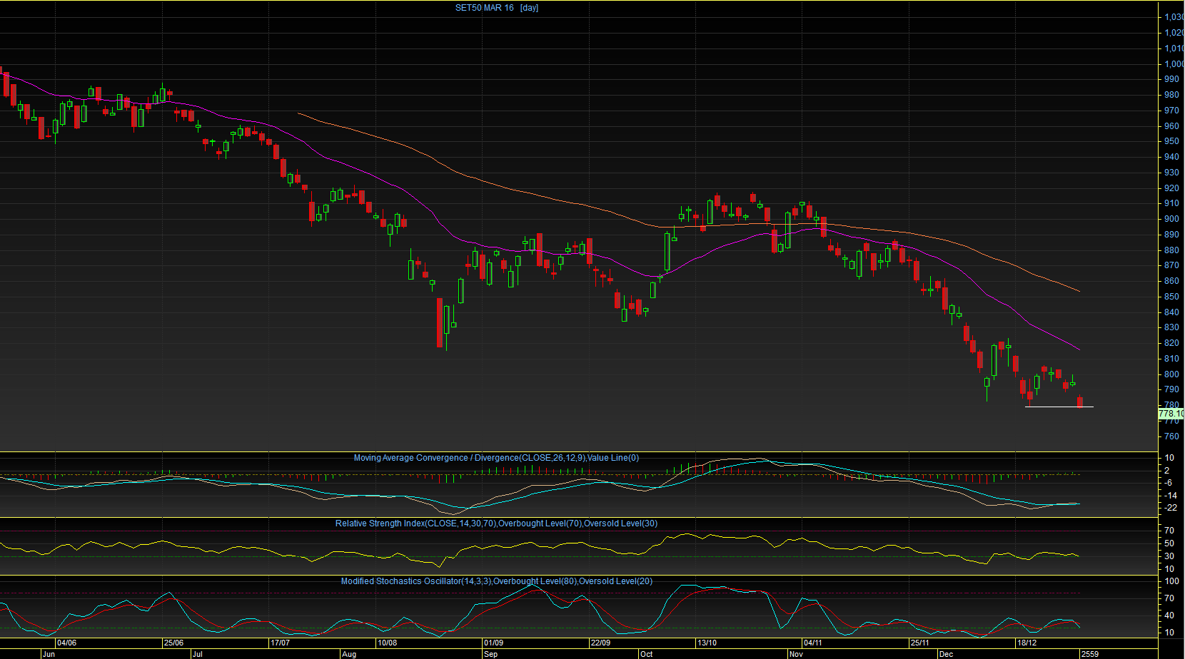 TF60 : เมื่อวันศุกร์สุดท้ายของปีที่ผ่านมา (30 ธ.ค 58) ดัชนีมีความพยายามใต่ระดับ ทะลุผ่านเส้น EMA75 วัน แต่ไม่สามารถ