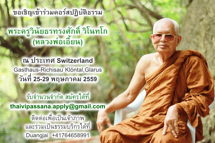 ขอเชิญร่วมคอร์สปฏิบัติธรรม หลวงพ่อเอี้ยน วิโนทโก ณ ประเทศ Switzerland