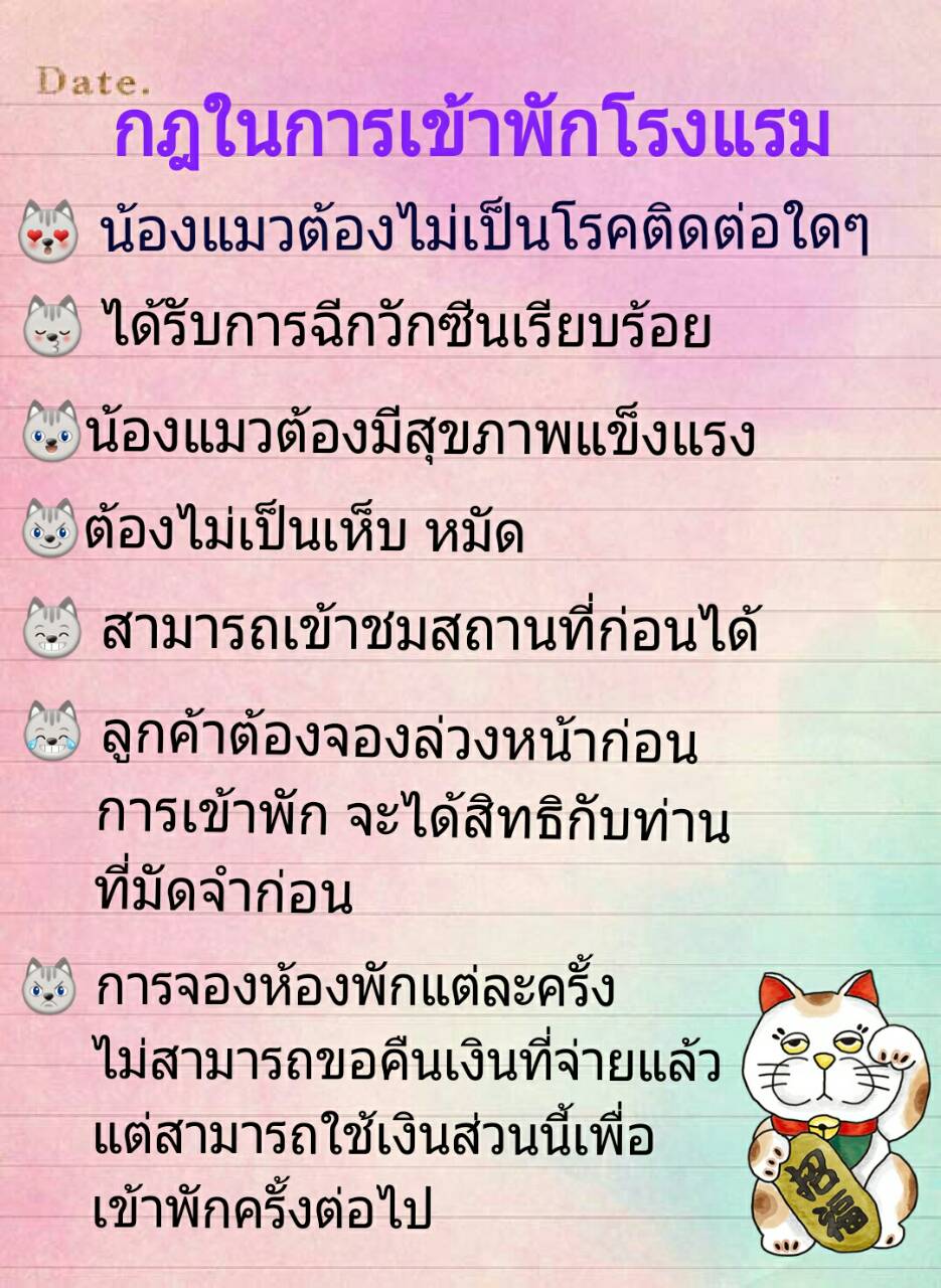 น้องแมวสามารถพักได้ 3 ตัว เพิ่มคิด 50 บาท