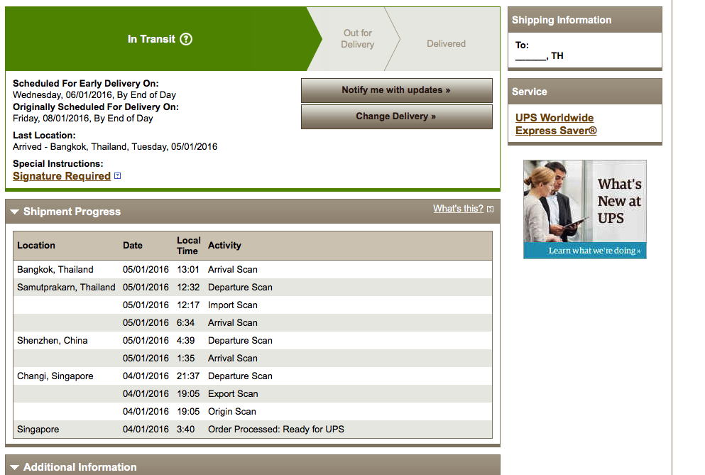 สงสัยเรื่องสถานะการจัดส่งสินค้าของ Apple Store Thailand ผ่าน UPS