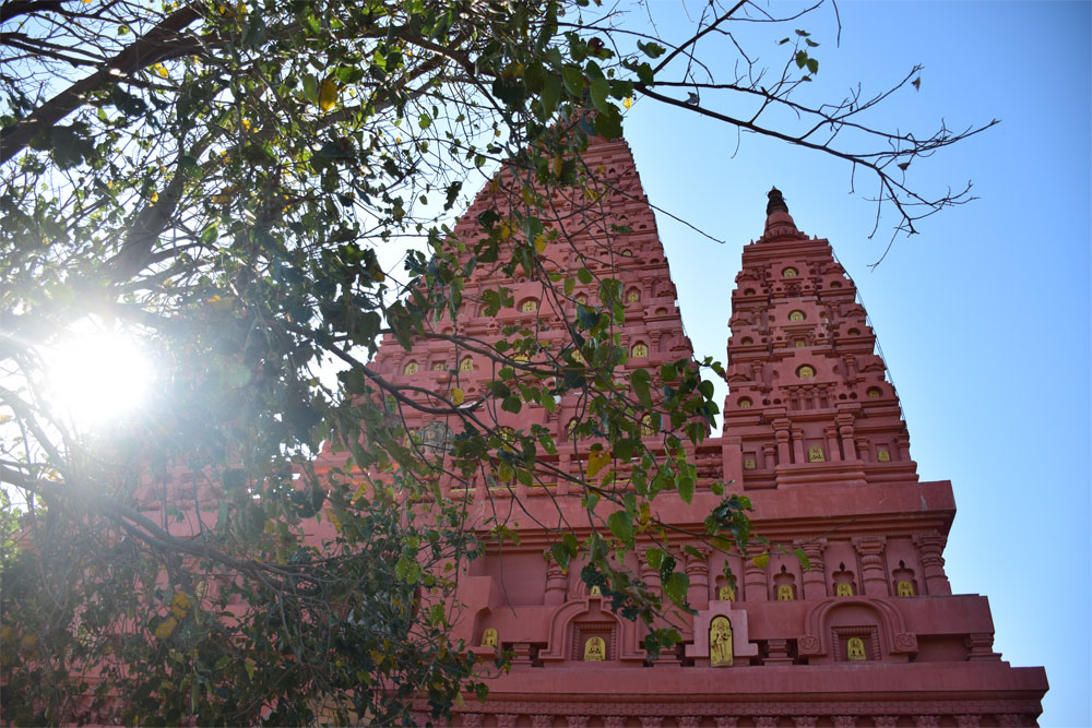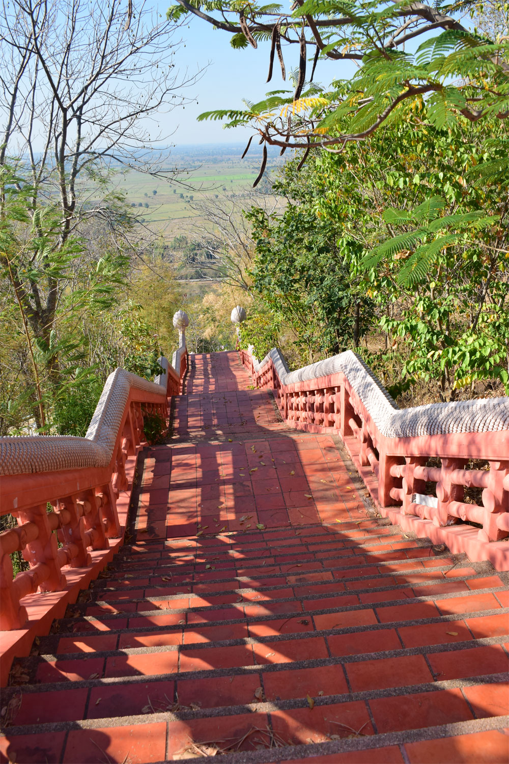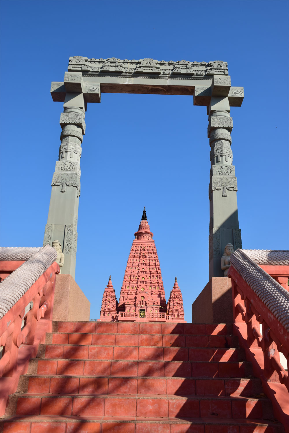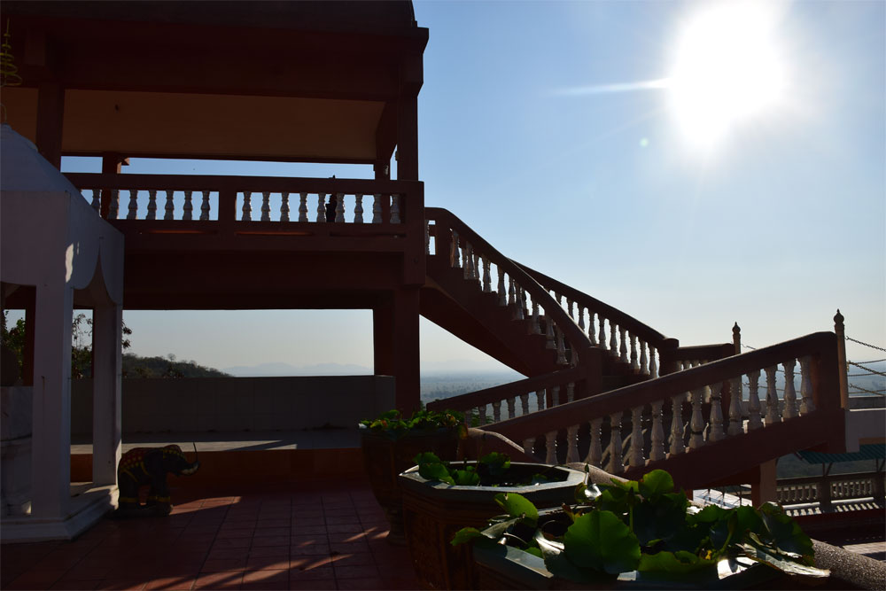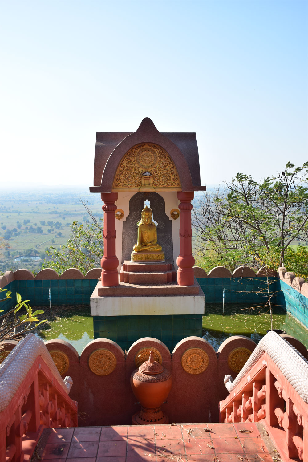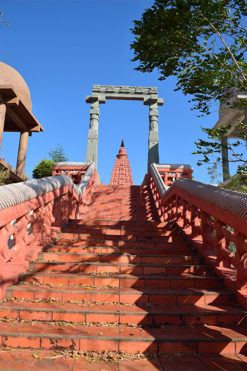 รถสองแถวรับส่งขึ้นไปบนพุทธคยาจำลอง