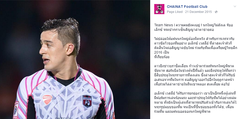 ข่าวดีที่สุด เป็นข่าวดีที่ออกมาตั้งแต่ปลายปีที่แล้ว สารภาพได้เลยว่า ถึงตอนนี้ก็ยังรู้สึกดีใจไม่หาย ที่ "Wesley Alex" ดาวซัลโวของทีม จะยังอยู่ต่อ