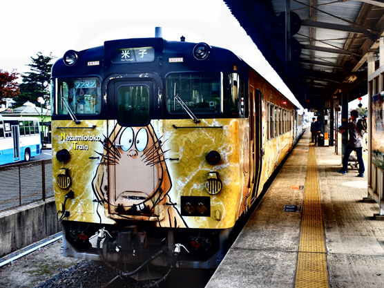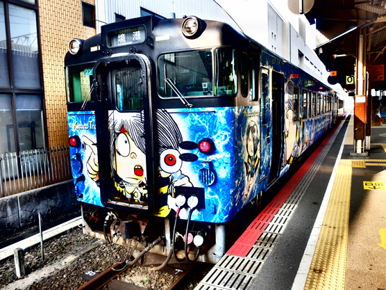 เป็นรถไฟขบวนที่น่ารักมากเป็น ลายการ์ตูน อสูรน้อยคิทาโร่ เพราะว่าเมือง Sakaiminato