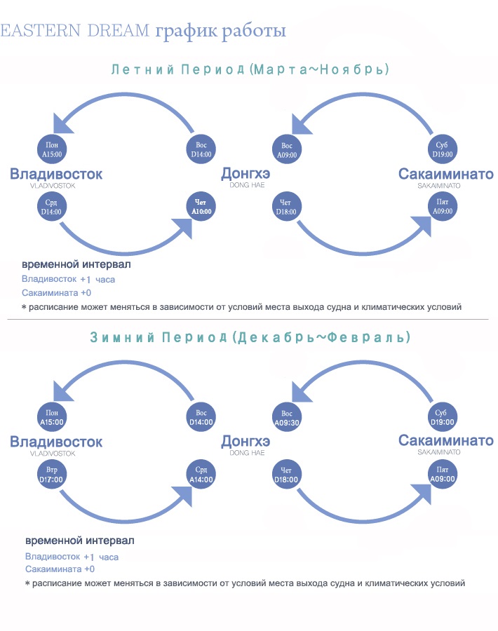 โดยเรือจะออกจากญี่ปุ่น ทุกวันเสาร์ เวลา 19.00 น. (ตามเวลาท้องถิ่น)