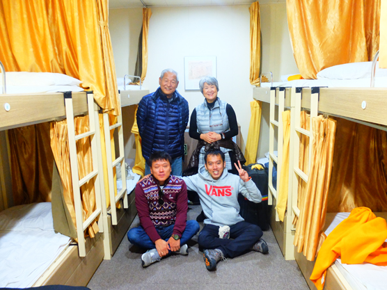 ส่วนเพื่อนร่วมห้องผมเป็น 2 พี่น้องชาวญี่ปุ่น ซึ่งเกษียณแล้ว Yamamoto-San และ Uada-San ออกเดินทางท่องเที่ยวด้วยกัน