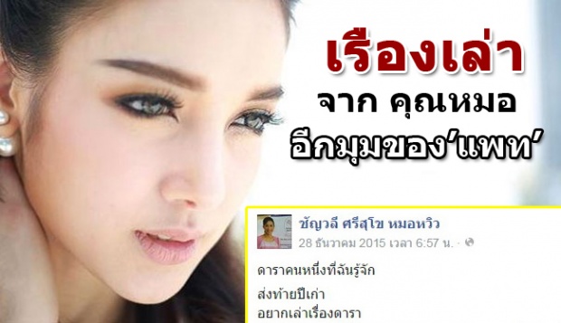 เรื่องราวแท้จริงจะเป็นอย่างไร ในเหตุการณ์ที่คู่กรณีเล่ากันอย่างคนละมุม คงต้องรอเจ้าหน้าที่ตำรวจเป็นผู้ตัดสินอีกที แต่ เมื่อวันที่ 28 ธันวาคม 2558 ก่อนเหตุการณ์จะเกิดขึ้น ก็มีคุณหมอท่านหนึ่งได้เขียนเล่าเรื่องราวอีกแง่มุมของ ดาราสาวคนนี้ ให้ได้รู้และรับทราบกัน