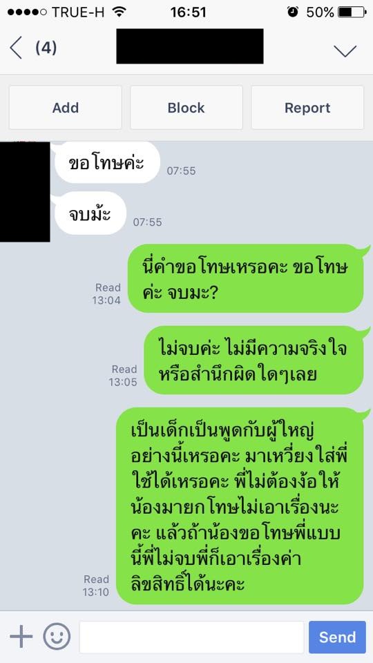จขกทเลยบอกว่าที่ติดต่อไปแค่ต้องการคำขอโทษที่จริงใจ อยากให้ผู้ปกครองอบรมน้องให้น้องสำนึกผิด