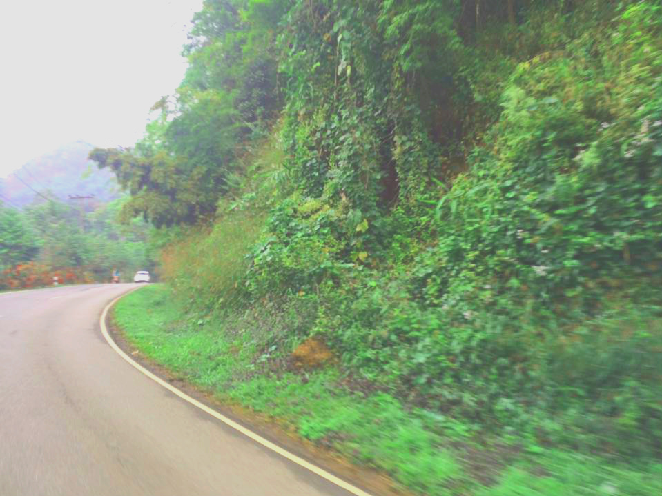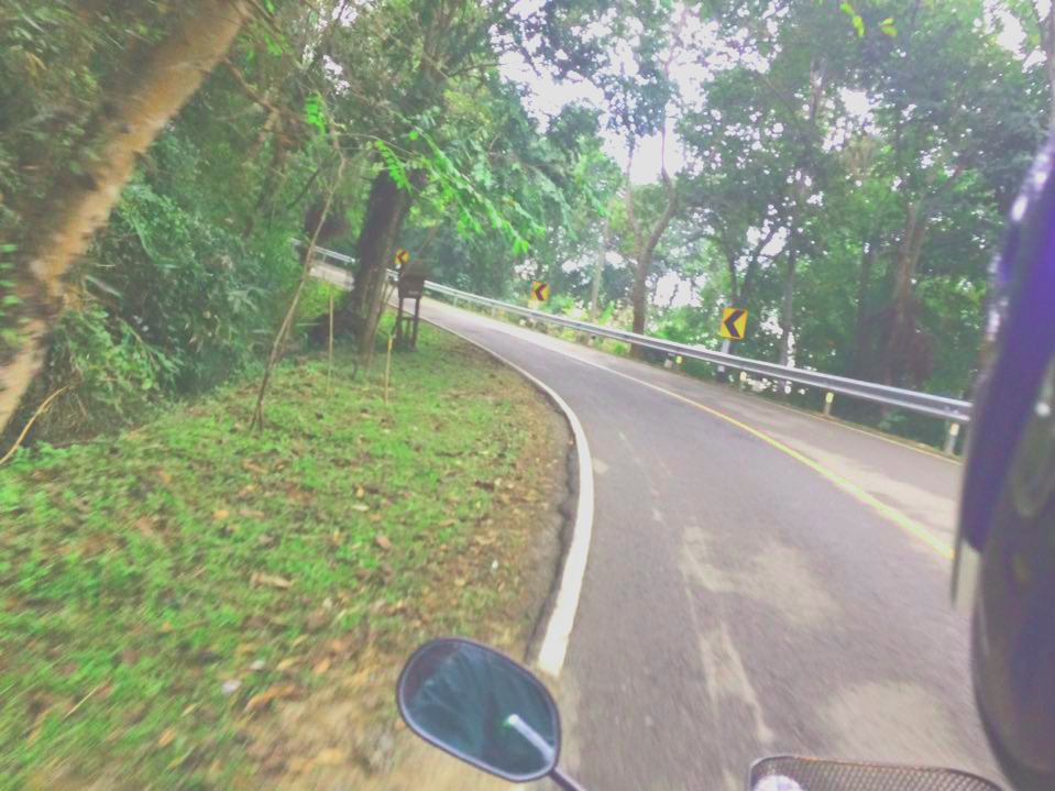 พอถึงช่วงหนึ่งรู้สึกได้ว่าถนนเริ่มเป็นเส้นทางแบบทางขึ้นดอยแล้วล่ะ เริ่มชันเริ่มโค้งขึ้นเรื่อยๆ ช่วงแรกๆก็ขับสบายๆ แต่พอขับนานเข้ายิ่งชันยิ่งโค้งเล่นเอามอไซค์ของพวกเรางอแงไม่ยอมออกตัวกันไปเลยทีเดียว จนคนขับคนซ้อนต้องช่วยรถออกแรงกันเลย 5555 นึกแล้วขำเลยเวลาเห็นเพื่อนคันหน้าช่วยกันออกแรงกระตุ้นช่วยรถ (รถคันหน้าชื่ออองตองนะ) 5555 (ส่วนรถที่เราขับชื่อบลูฮาวาย) 55555++