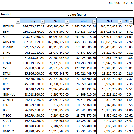 NVDR - 6/Jan/16 ** Top 20 - Buy & Sell **