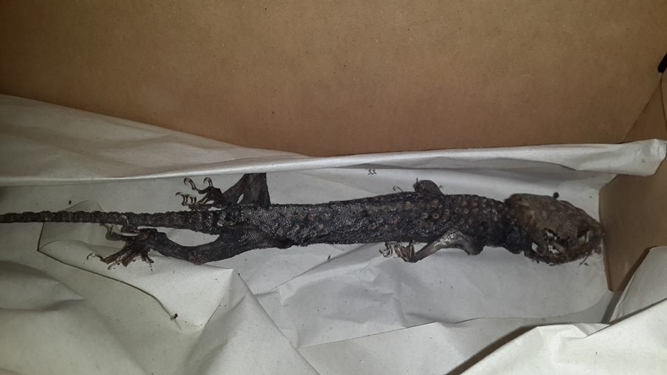 คือมันเป็นตุ๊กแกที่พ่อเจอมันแห้งตายอยู่บนฝ้าค่ะ เป็นมัมมี่ตุ๊กแกโดยแท้เลยแหละ