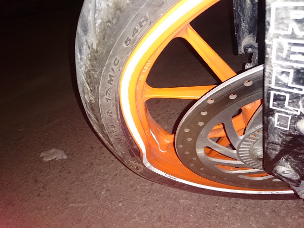3.ก้อนหินปริศนา โผล่ออกมาในระยะกระชั้นชิดมากทั้งๆที่ตอนเปิดไฟสูงเช็คแล้วไม่มี(หรือผมอาจดูไม่ดีเอง) เป็นช่วงทางตรงไม่มีจุดอับสายตา และมาอยู่ตรงล้อพอดี(หรือผมอาจจะซวยสุดๆ)