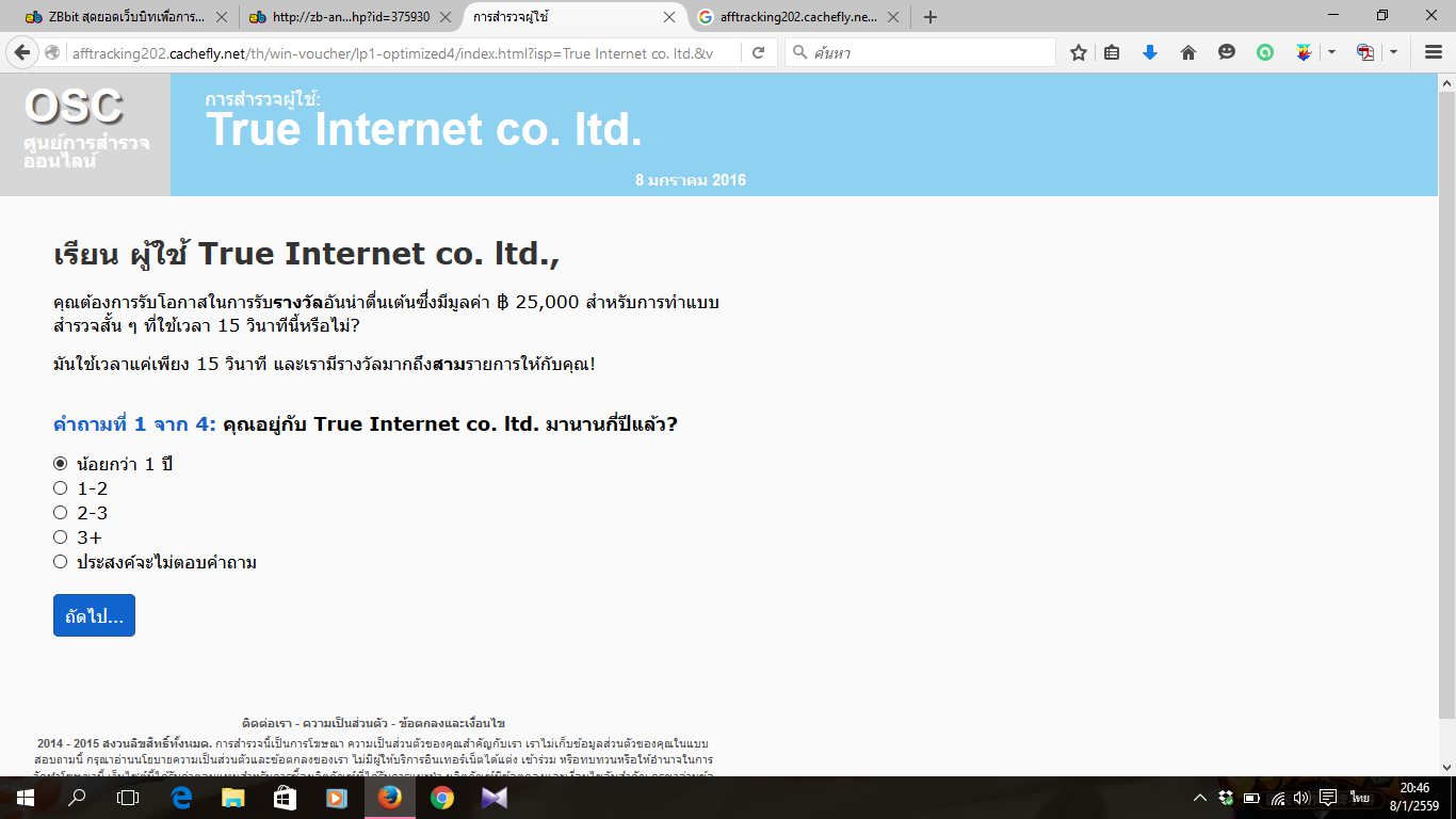 ต้องขออภัยในความไม่สะดวกด้วยนะครับ แบบสำรวจดังกล่าว มิได้ดำเนินการโดยบริษัทฯ หากมีการสำรวจความคิดเห็นลูกค้า บริษัทฯจะทำโดยการจัดส่งแบบสอบถามไปยังอีเมลของลูกค้าผู้ใช้งานโดยตรง หรือโดยเจ้าหน้าที่ตัวแทนของบริษัทฯ โทรติดต่อสอบถามโดยตรงกับลูกค้าเท่านั้น บริษัทฯ ไม่มีการจัดทำแบบสำรวจผ่านหน้าเว็บไซต์ออนไลน์ ซึ่งการทำแบบสำรวจดังกล่าวเป็นรูปแบบหนึ่งของการโจมตีของ Malware ที่มีคนตั้งใจเขียนหรือสร้างขึ้นเพื่อทำลายหรือโจรกรรมข้อมูลต่างๆ ในคอมพิวเตอร์ของผู้ใช้งาน บริษัทฯ