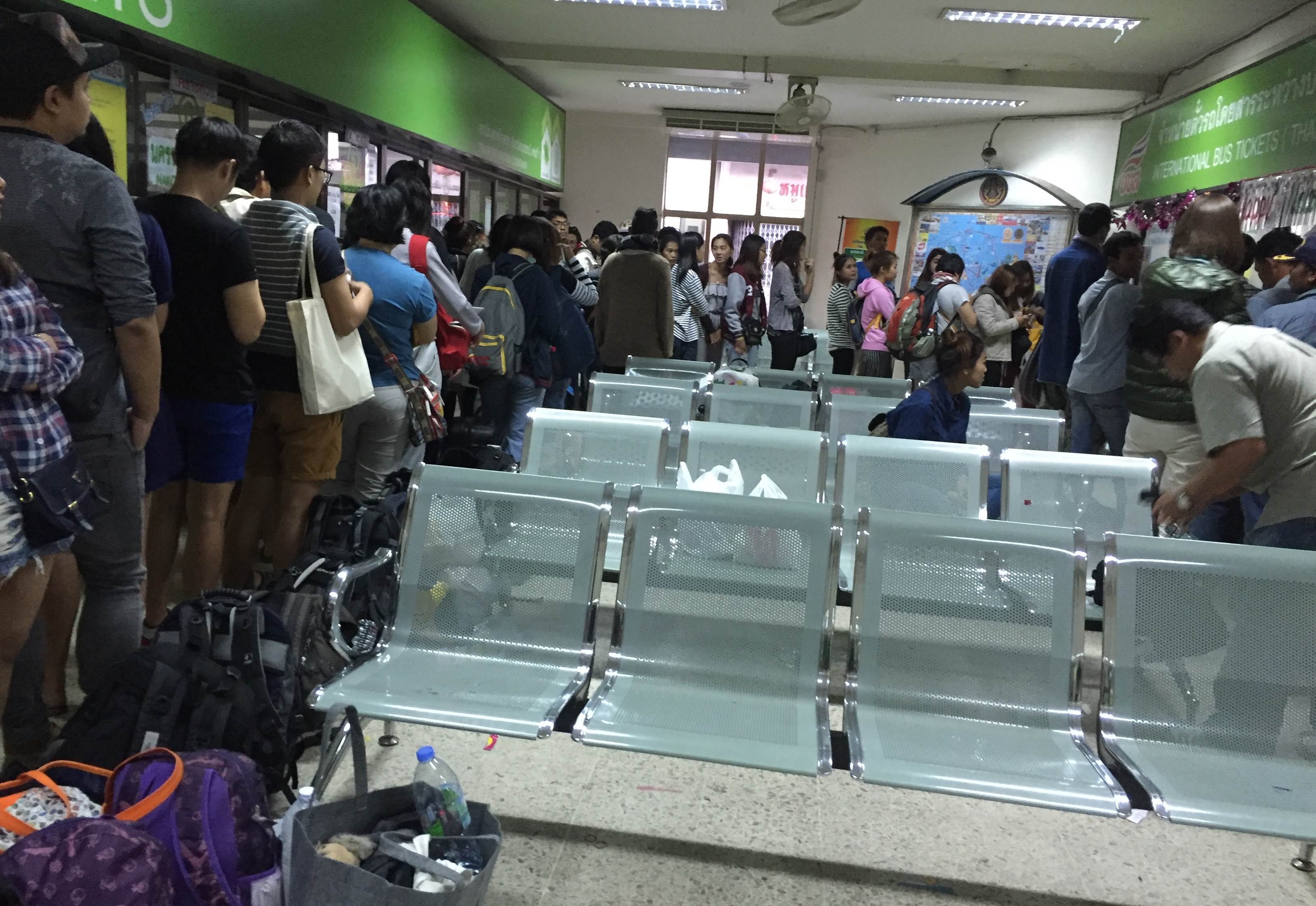 ออกเดินทางจากสกลนครตี 4 ถึงอุดรธานีหกโมงกว่าๆ (อีที่หนีไปกะผัวนั่นแหละไปส่งที่อุดร555) ตกใจแรงเมื่อถึงบขส.อุดร กระเป๋าเรียงแถวกันยาวมาก แต่การซื้อตั๋วอุดร-วังเวียง ไม่ได้เรียงตามกระเป๋าที่ต่อแถวไว้ตอนแรกอ่ะ 07.00 น. พอคนขายตั๋วมาคนมาจากไหนไม่รู้ ...ตามภาพเลย