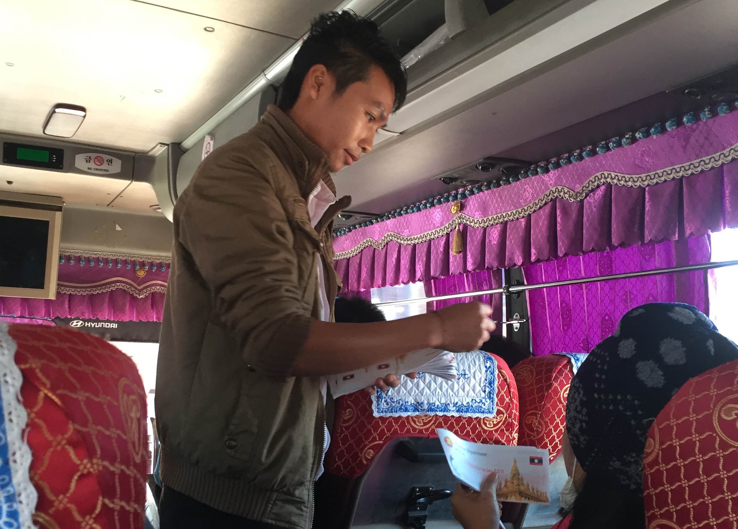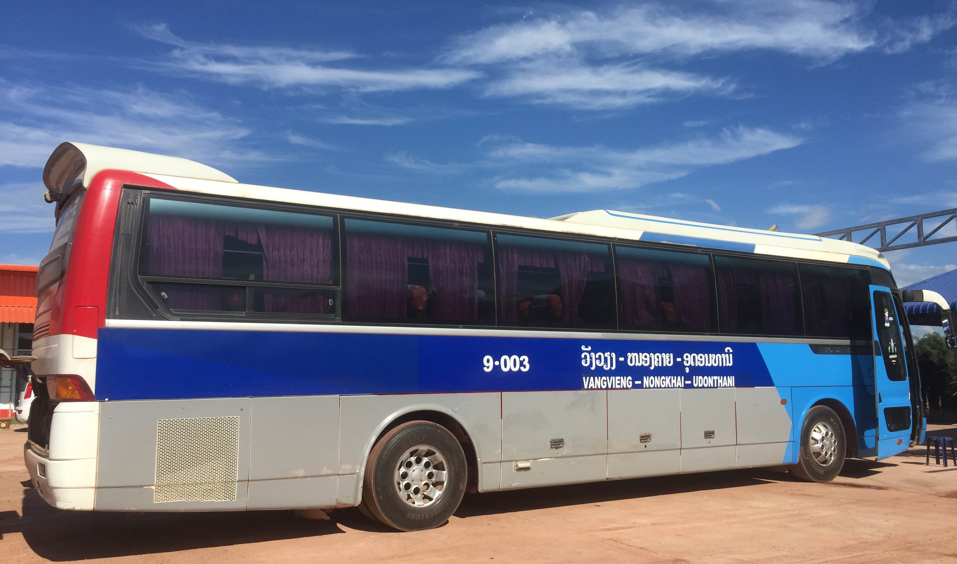 รถที่วิ่งตรง อุดรธานี-วังเวียง เค้ามีรถ 2คัน แต่ก็ต้องเหลือที่ไว้ให้คนที่จะขึ้นที่หนองคายด้วยนะ คือถ้ารถเต็มก็ต้องขึ้นรถ อุดร-เวียงจันทน์ แล้วคุณค่อยไปต่อรถที่เวียงจันทน์ไปที่วังเวียงอีกทีอ่ะ แต่อาลีโชคดีที่ได้ขึ้นรถคันที่ 2 นั่งหลับยาวจากอุดรถึงวังเวียงโลดดด..... รถอุดร-วังเวียง รอบแรก 08.30น. คันที่ 2 08.40น. บนรถเนี้ยเค้าจะแจกใบที่เอาไว้เขียนสำหรับเข้าออกไทย และเข้าออกลาวด้วยนะ ที่แอร์รถถืออ่ะ