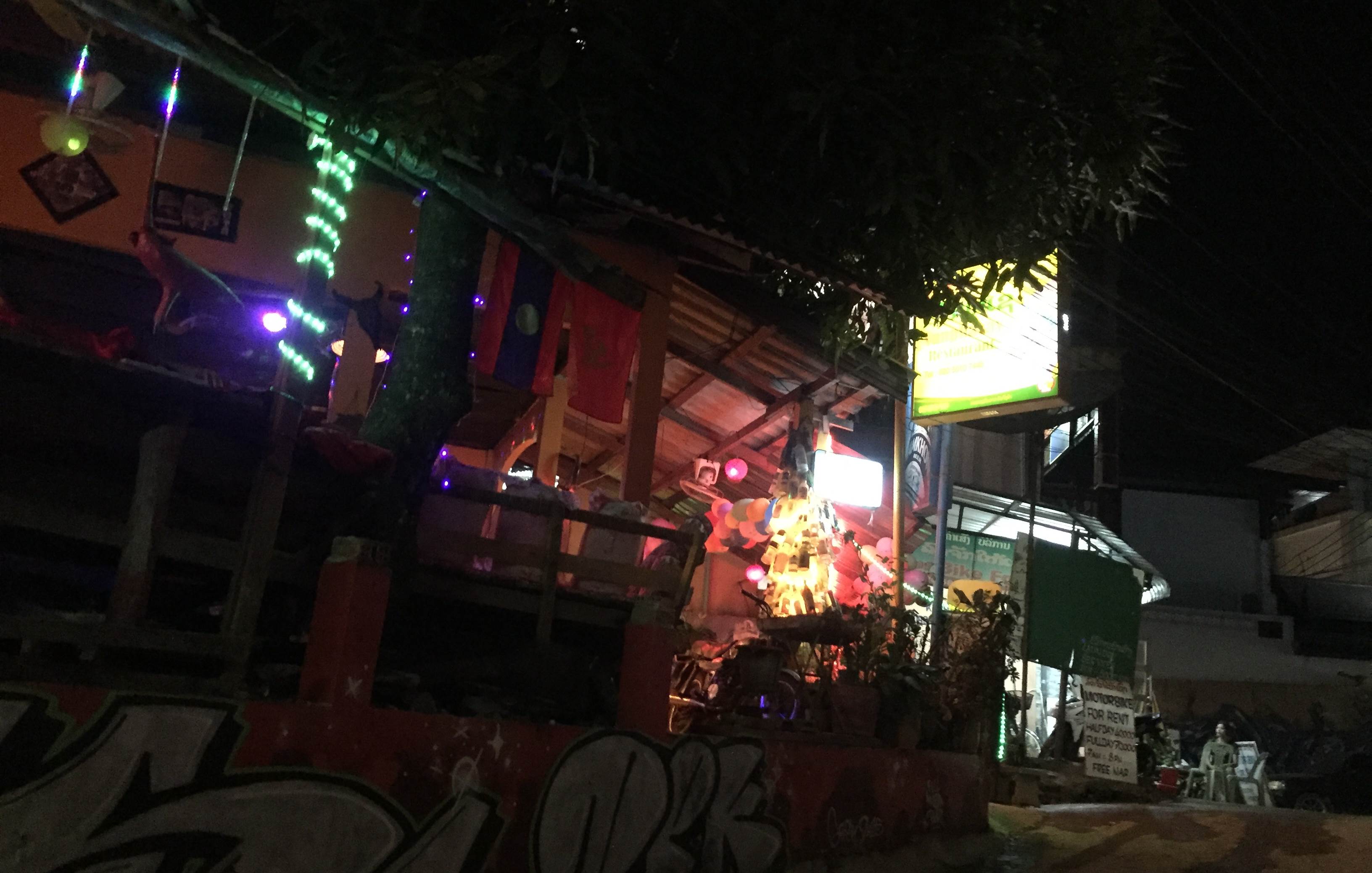 เย็นๆละ หลังจากเก็บของเสร็จ ก็ออกไปหาซื้อทริปสำหรับวันพรุ่งนี้กันค่ะ ได้ทริปเที่ยวแบบเต็มวัน 09.00-17.00น. จะอยู่ที่ราคา 150,000กีบ/คน นี่ต่อแล้วนะ!! (เป็นราคาที่รวมค่าเข้าสถานที่ต่างๆที่จะไป และอาหารเที่ยง) แต่เย็นนี้หากินไรก่อนละกัน มื้อนี้เบาๆไม่เน้นอาหารท้องถิ่นค่ะ จัดไปส้มตำไก่ย่างเนี้ยแหละ ฮ่าๆๆ อิ่มละกลับห้องอาบน้ำเตรียมตัวไป Coundown กันเลยยยยยย กระซิบว่าสถานที่คือ ซากุระบาร์นะคะ