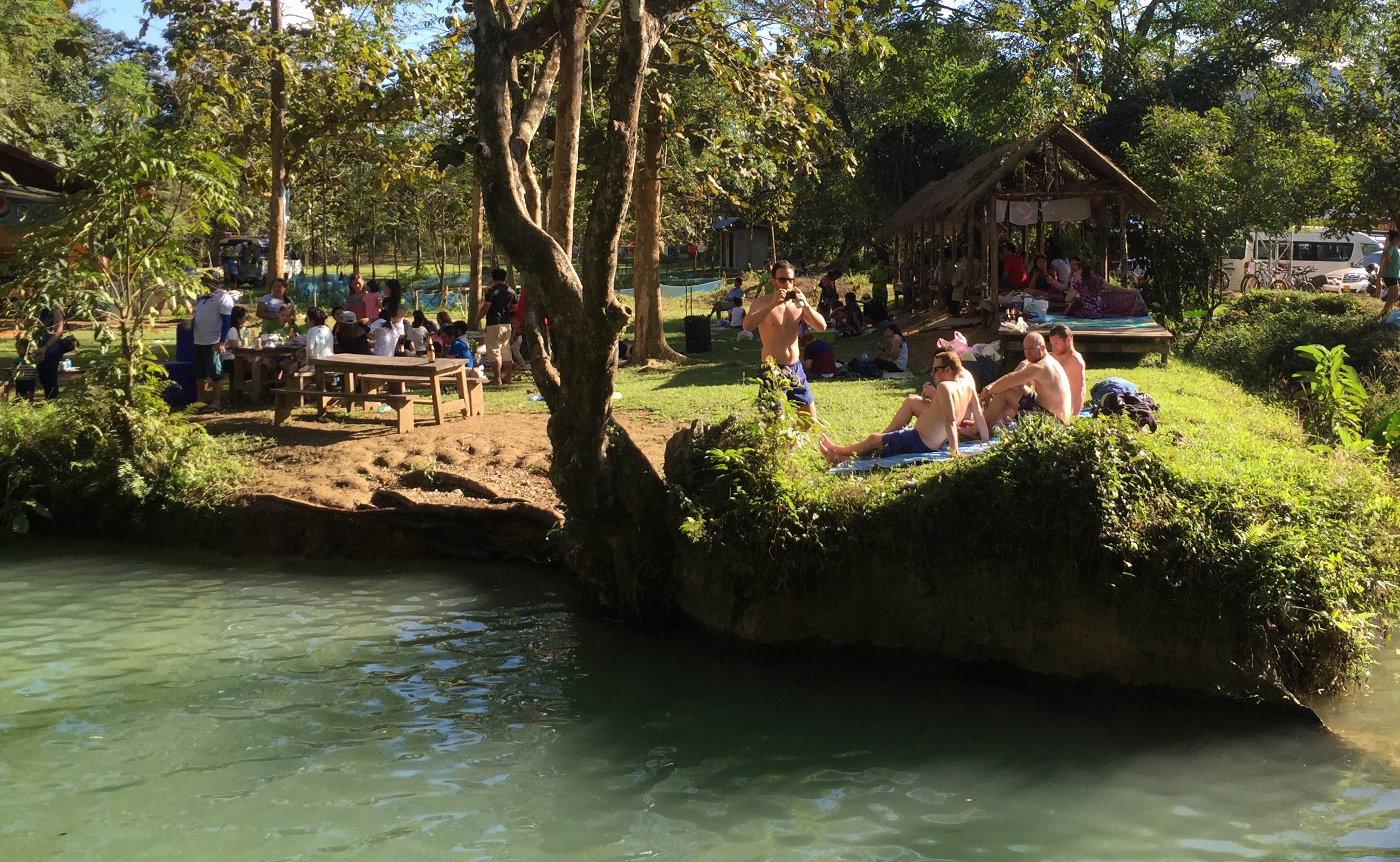 ที่ๆสาม >> ไปบูลากูน << เห็นว่าเป็นแลนด์มาร์คของที่นี่เลยนะ แต่ไม่ได้ตั้งใจจะไปโดดน้ำหรอกเพราะอาลีหนาวตั้งแต่ถ้ำน้ำล่ะ ขอแค่ไปดูเฉยๆ แต่ที่ไปเห็นเนี้ยน้ำมันขุ่นๆอ่ะ แล้วน้ำไม่เขียว สงสัยคนเล่นเยอะ เพราะเห็นแต่คนเยอะมาก อ้าวววจับจองพื้นที่กันค๊า
