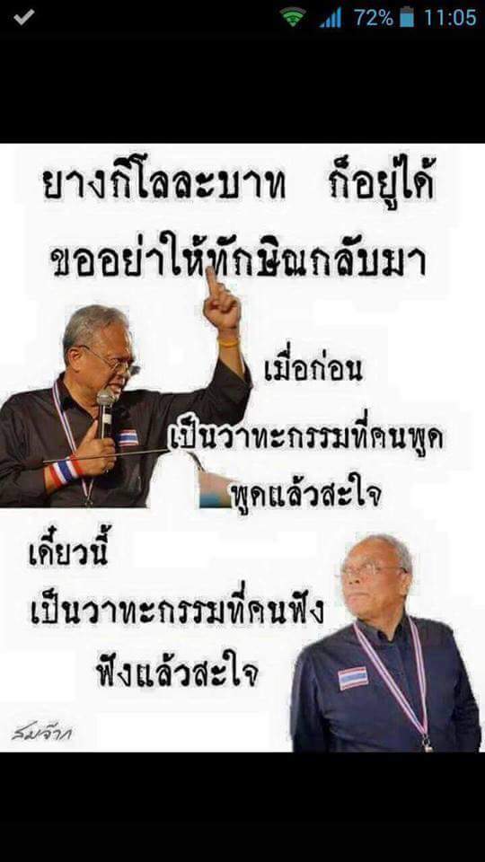 ขอให้พวกเราบริจาคเพื่อเป็นทุน กำจัดระบอบทักษิณออกไป พร้อมกับหอบเงินบริจาคที่พวกเดียวกันบริจาคให้ หนีเข้ากลีบเมฆ
