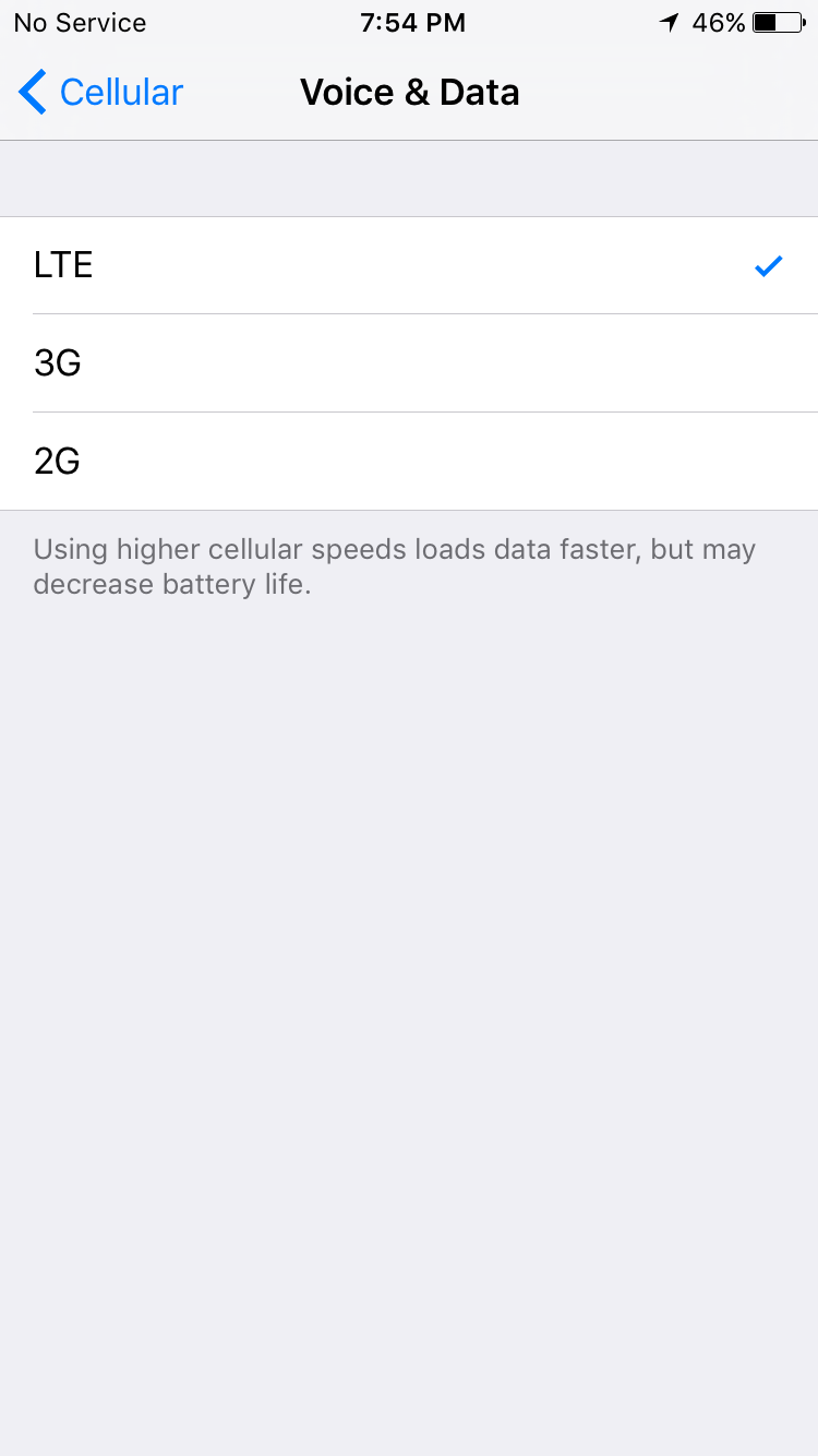 มีปัญหา เปลี่ยนการตั้งค่าเป็นLTE ขึ้นno service ตลอด