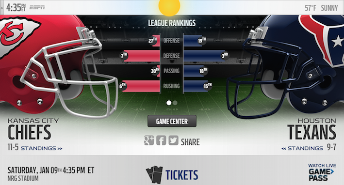 5th Seed Kansas City Chiefs พบกับ 4th Seed Houston Texans