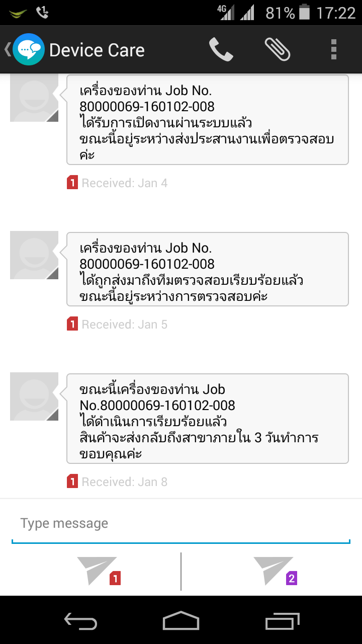พอกล่องกลับมาถึง TrueShop เซ็นทรับ ปิ่นเกล้าก็มี SMS มาแจ้งให้ไปรับอุปกรณ์คืน โดยไม่เสียค่าใช้จ่ายครับ